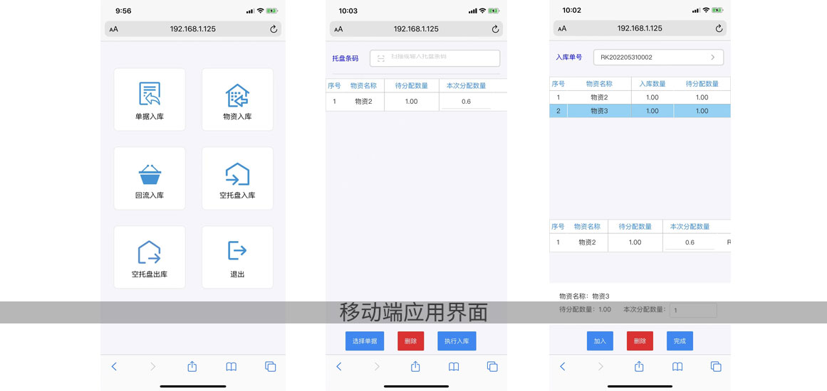 基礎(chǔ)數(shù)據(jù)管理 | 托盤條碼管理 | 物資入庫 | 物資出庫 | 自動回流 | ||||