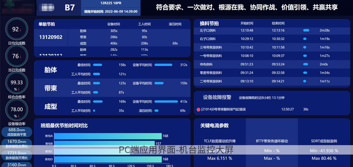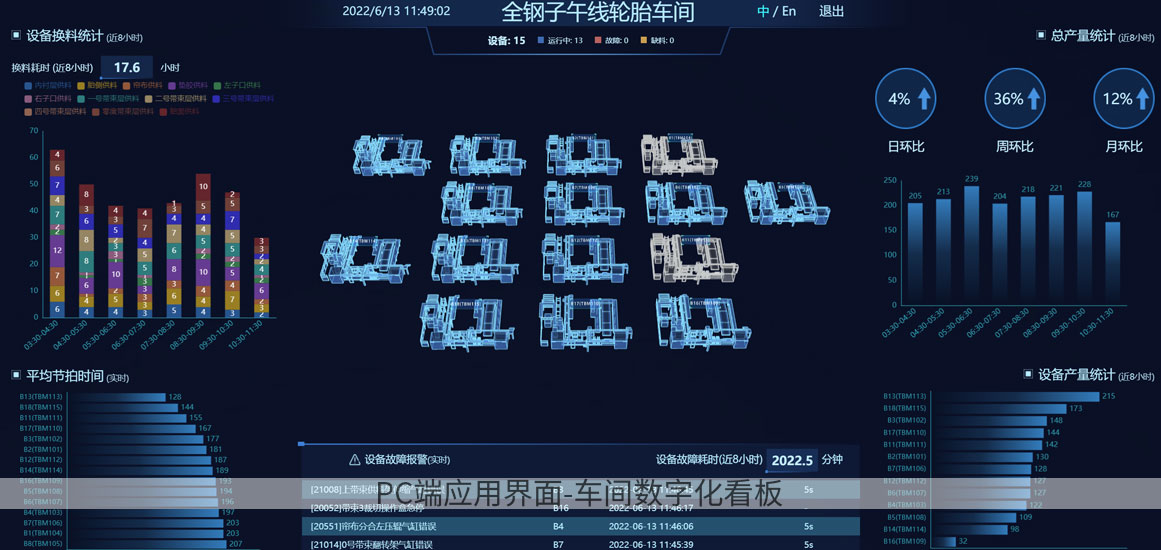 針對(duì)貴州省某輪胎5G全聯(lián)接智能工廠,適用于賽象科技生產(chǎn)的輪胎成型機(jī)設(shè)備的設(shè)備數(shù)字化管理及在線監(jiān)控場(chǎng)景.通過(guò)設(shè)備物聯(lián)數(shù)據(jù)采集集成設(shè)備數(shù)字化工業(yè)App,為客戶提供了設(shè)備的安全風(fēng)險(xiǎn)管理、部件壽命管理、在線維護(hù)指導(dǎo)、效率分析、工藝質(zhì)量監(jiān)控、故障報(bào)警監(jiān)控及響應(yīng)管理、產(chǎn)量分析、換料效率管理、關(guān)鍵工藝參數(shù)監(jiān)控、能耗監(jiān)控管理及綜合OEE分析等設(shè)備運(yùn)行階段的產(chǎn)品生命周期管理功能。