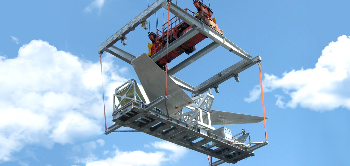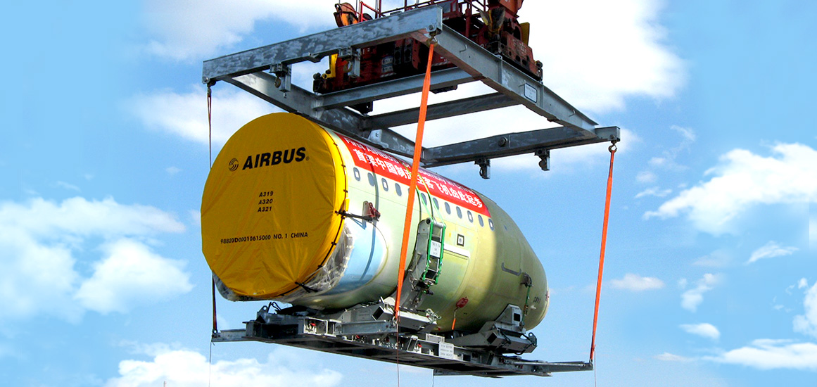 吊具用于飛機大部件在天津港和漢堡港的裝載和卸載??傻跹bA319/A320/A321型號的飛機部件。