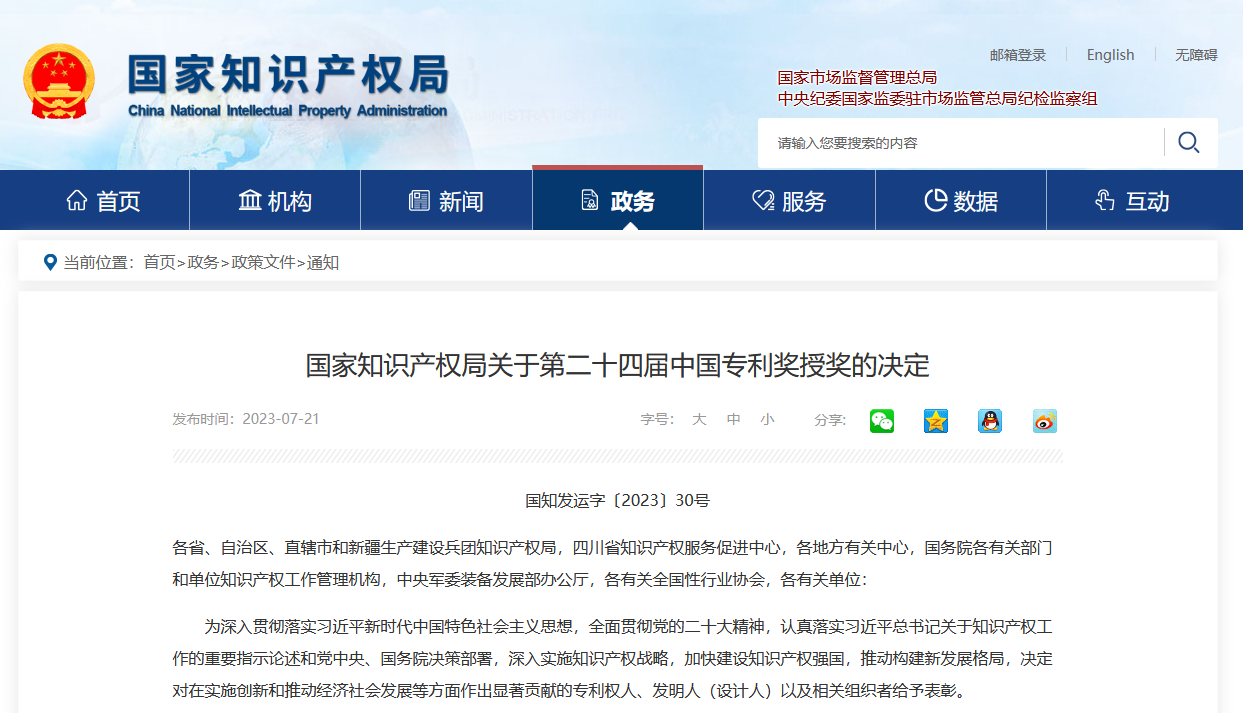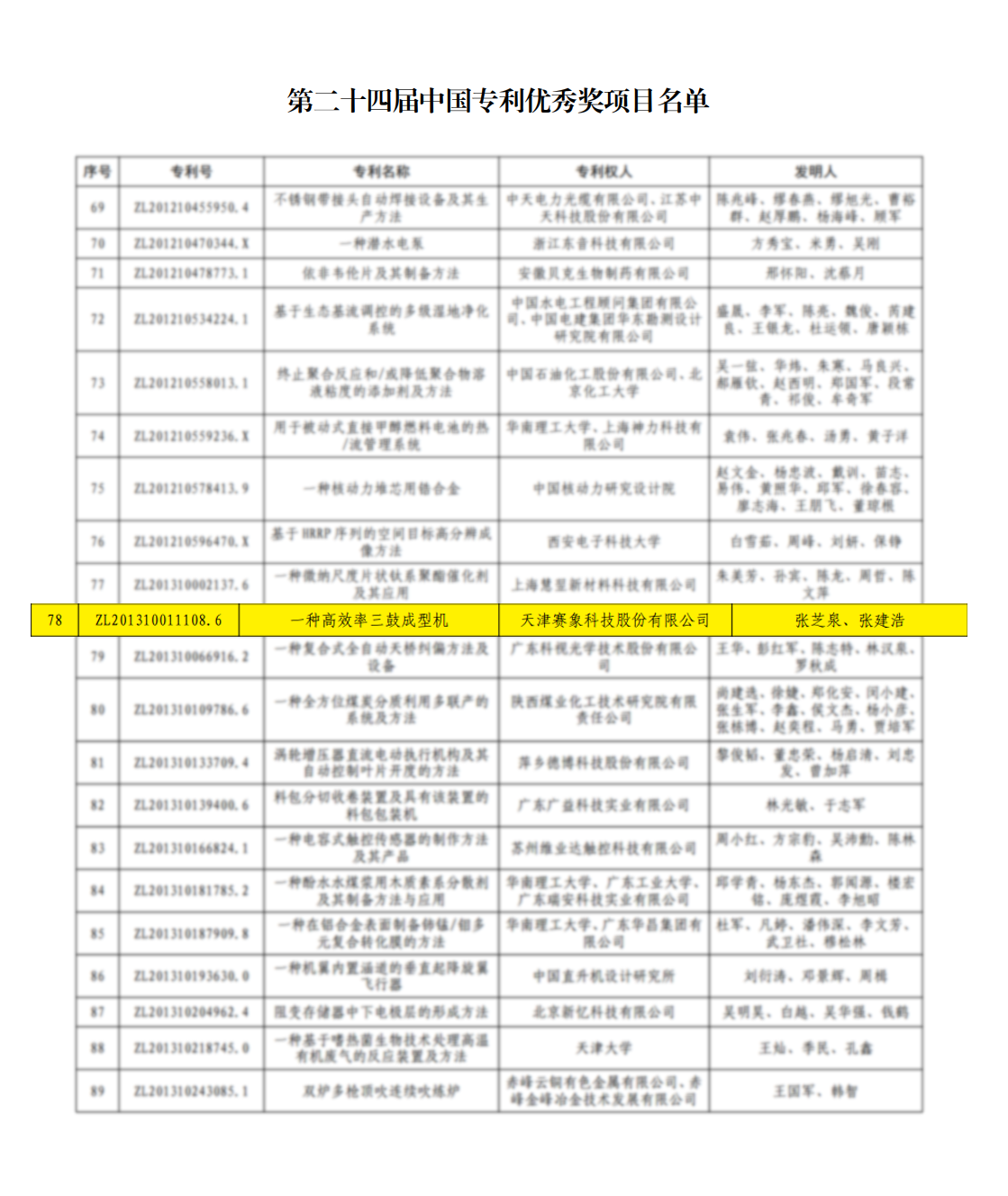 近日,中國國家知識產權局公布了第二十四屆中國專利獎授獎決定,賽象科技申報的“一種高效率三鼓成型機”榮獲本屆中國專利優(yōu)秀獎,該專利去年曾榮獲天津市專利金獎,這也是公司第五次獲得中國專利優(yōu)秀獎。