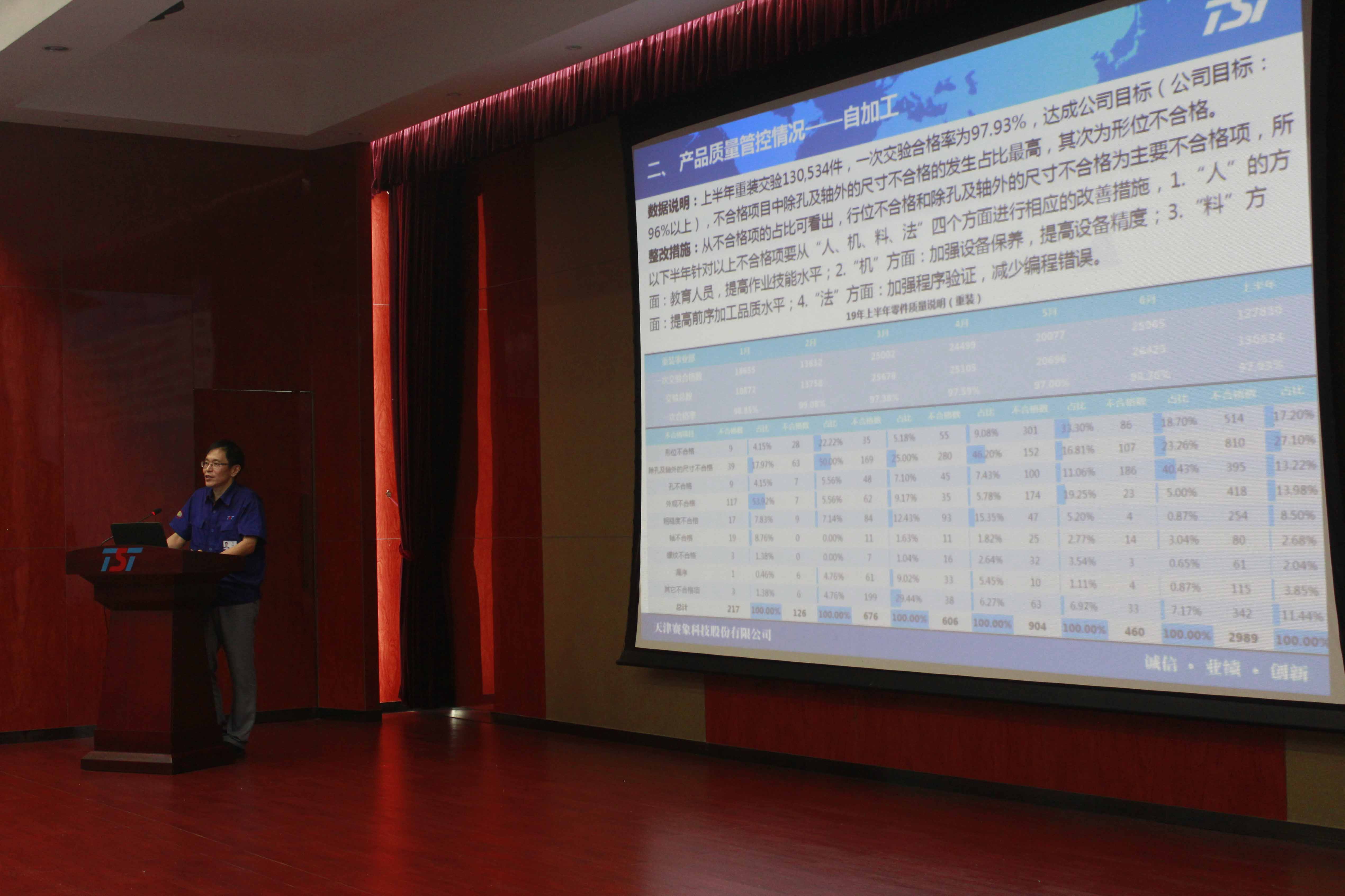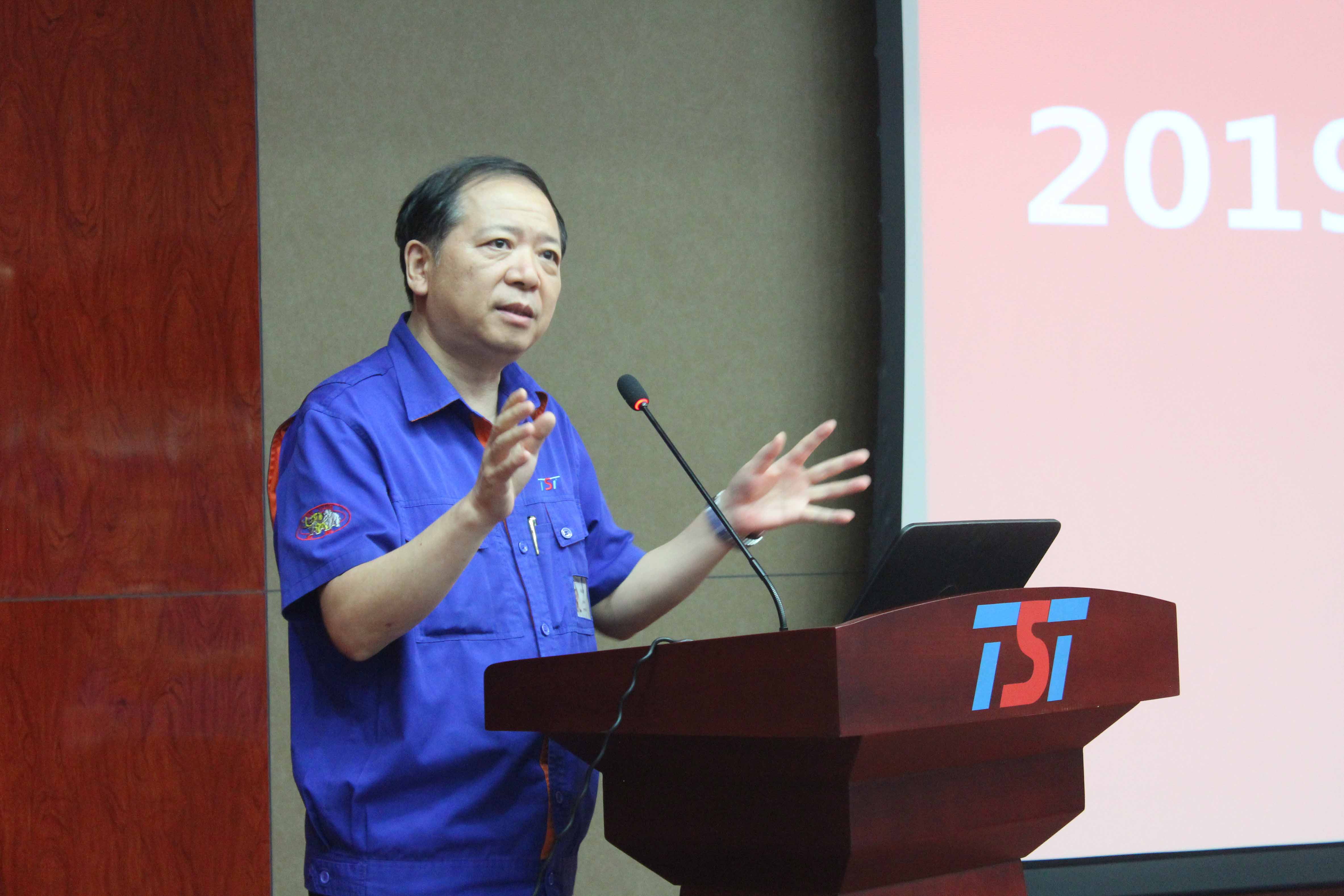大會在莊嚴(yán)的國歌聲中拉開帷幕。首先,公司總經(jīng)理史航作了公司2019年年中總結(jié)。史總從“2019年上半年經(jīng)營業(yè)績完成情況、產(chǎn)品質(zhì)量管控情況、降本增效、生產(chǎn)效率提升、安全與能源管理”幾個(gè)方面對2019年上半年工作完成情況進(jìn)行了全面地總結(jié)。史總通過上半年工作的完成數(shù)據(jù),客觀分析了當(dāng)前面臨的形勢,并對公司下半年的工作重點(diǎn)和相關(guān)的改進(jìn)措施提出了新的要求,并號召各部門共同努力,為完成公司2019年的方針和經(jīng)營目標(biāo)而共同奮斗!