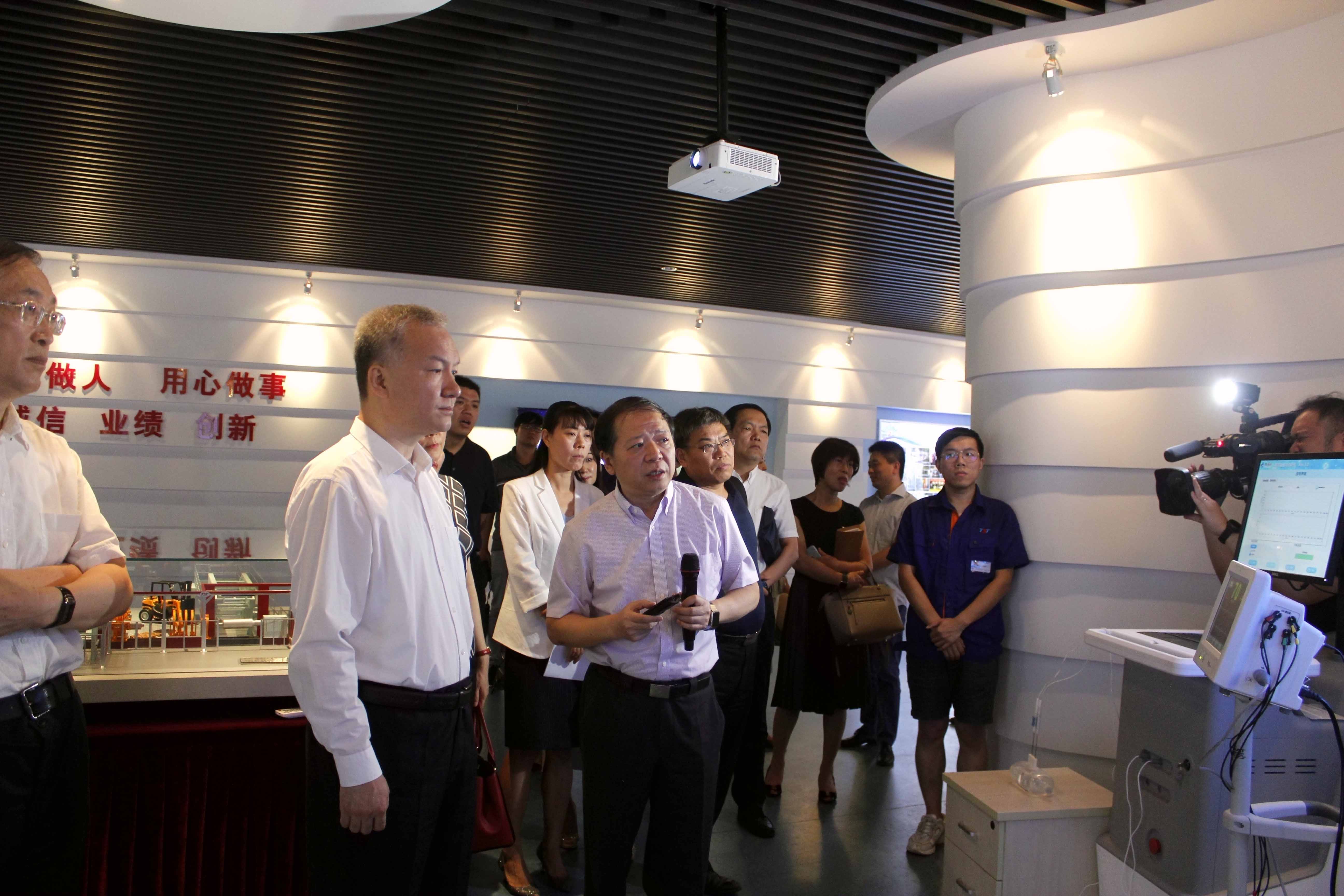 在張建浩董事長陪同下,來賓們先后參觀了公司展廳和生產(chǎn)制造車間。調(diào)研期間,張建浩董事長介紹了由賽象集團(tuán)最新自主研發(fā)的高壓陡脈沖腫瘤治療儀。自2018年樣機(jī)研發(fā)成功后,賽象集團(tuán)與中國人民解放軍總醫(yī)院(301醫(yī)院),上海交通大學(xué)瑞金醫(yī)院、天津醫(yī)科大學(xué)總醫(yī)院、天津市第一中心醫(yī)院、青島大學(xué)附屬醫(yī)院、首都醫(yī)科大學(xué)附屬北京佑安醫(yī)院、中國人民解放軍火箭軍特色醫(yī)學(xué)中心等多家國內(nèi)頂尖權(quán)威醫(yī)院合作,開展了納米刀肝腫瘤消融手術(shù)的臨床實(shí)驗(yàn),目前已成功完成150例肝腫瘤消融手術(shù),目前系統(tǒng)已順利通過 CE認(rèn)證,在醫(yī)療器械領(lǐng)域取得了歷史性重大突破。各位來賓對治療儀的技術(shù)問題和臨床效果進(jìn)行了詳細(xì)的詢問和探討,對公司取得的創(chuàng)新成果給予了高度評價。