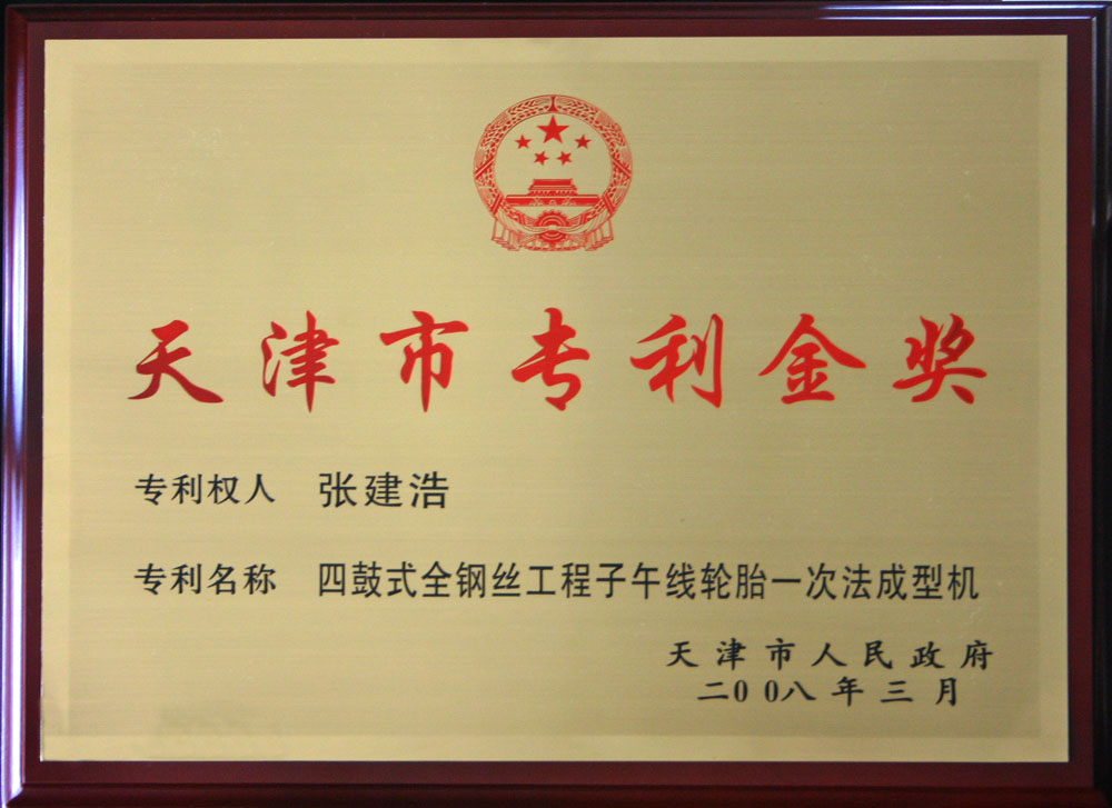 天津市專利金獎(jiǎng)——全鋼絲載重子午線輪胎一次法成型機(jī)