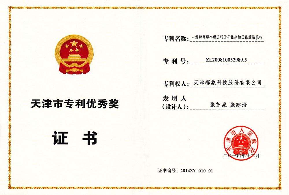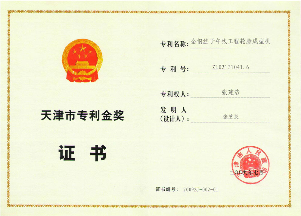 天津市專利金獎(jiǎng)——全鋼絲子午線工程輪胎成型機(jī)